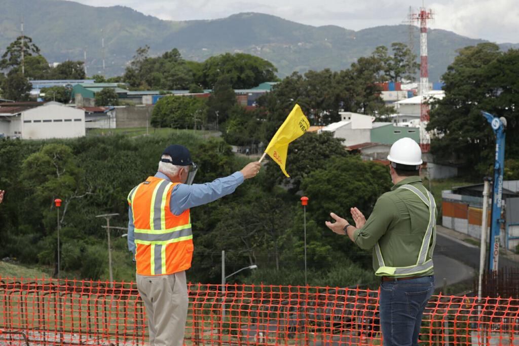 Ondeando un banderín amarillo, el ministro de Obras Públicas y Transportes, Rodolfo Méndez Mata, dio la orden de inicio a la construcción del nuevo puente sobre la quebrada Rivera, en el distrito tibaseño de León XIII.