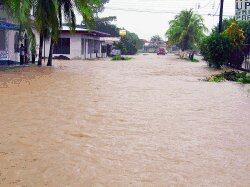 Upala (Alajuela). Las intensas lluvias que comenzaron a las 2 a. m. del martes provocaron el desbordamiento del río Zapote y la posterior inundación de la ciudad de Upala.