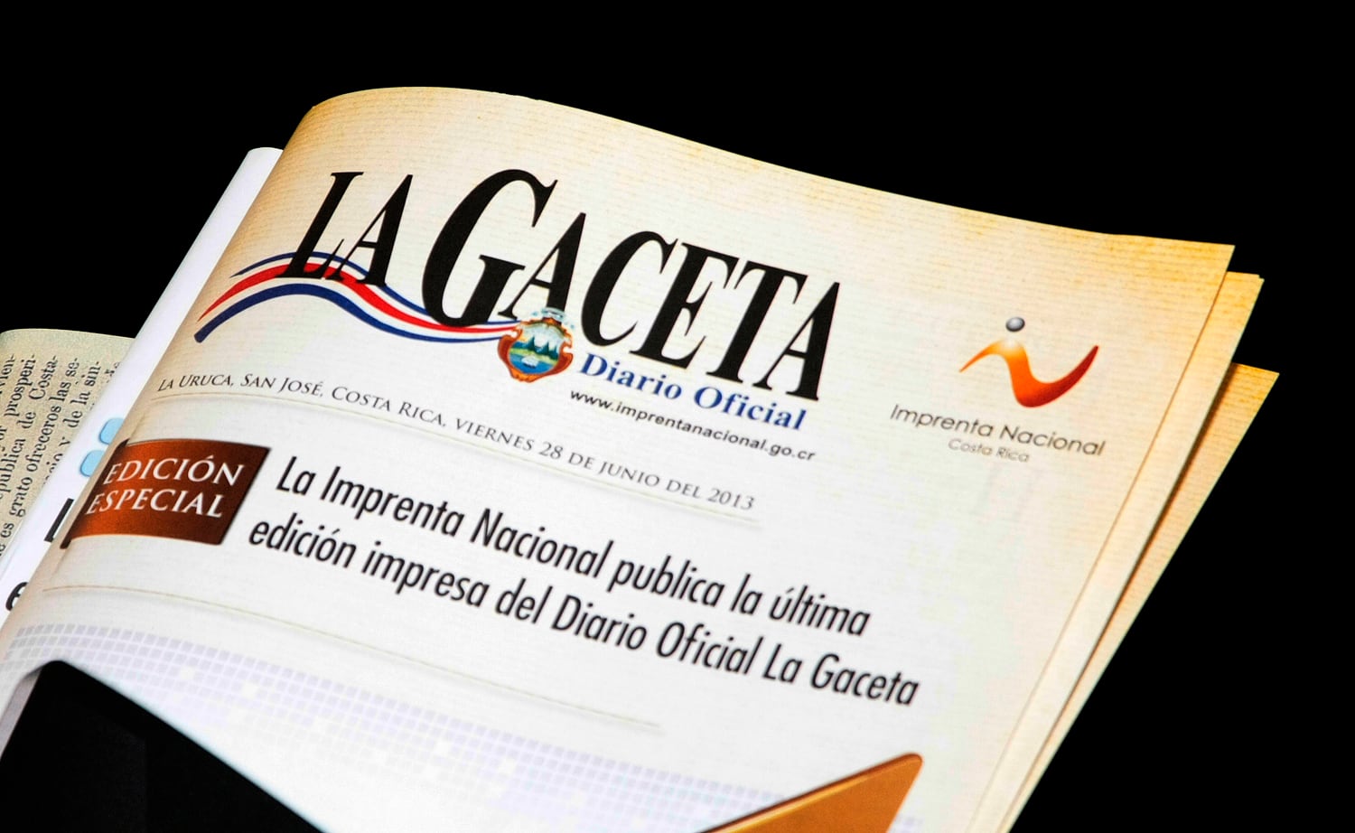 La semana pasada jerarcas de la Imprenta Nacional anunciaron que el diario del Estado dejaría de circular en papel y lo haría en línea. El diario se publicó por primera vez en 1878.