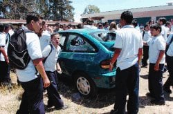La gresca terminó con el carro de Hidalgo totalmente destruido, decenas de ventanas rotas, una fotocopiadora dañada y 1.500 alumnos sin lecciones durante miércoles y jueves pasados.