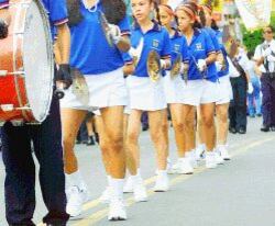Quizá los estudiantes de Alajuela sabían de antemano que el Sol pegaría fuerte porque las muchachas lucieron allí más sus piernas.