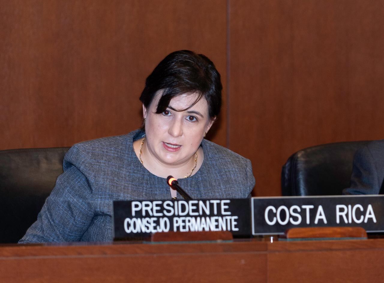La embajadora Solano informó de que, apenas recibió la solicitud de Almagro, iniciaron las consultas y gestiones entre los estados miembros de la Organización, así como las conversaciones para identificar los pasos necesarios para la activación del artículo 20 de la Carta Democrática.
