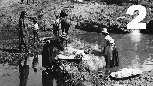 La fotografía muestra un lavandero a cielo abierto en Paso Ancho, en 1920.