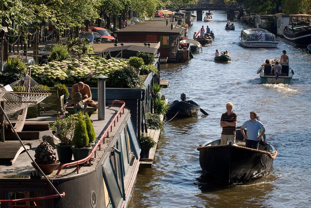 Frente al Prinsengacht está la casa de Anna Frank y muchos museos están al borde de los canales. Además, ellos están vivos: por allí pasan botes con turistas y con carga, a su lado las cafeterías sirven bocadillos y se celebran mercados. Ningún país ha tenido una relación con el agua como Holanda.