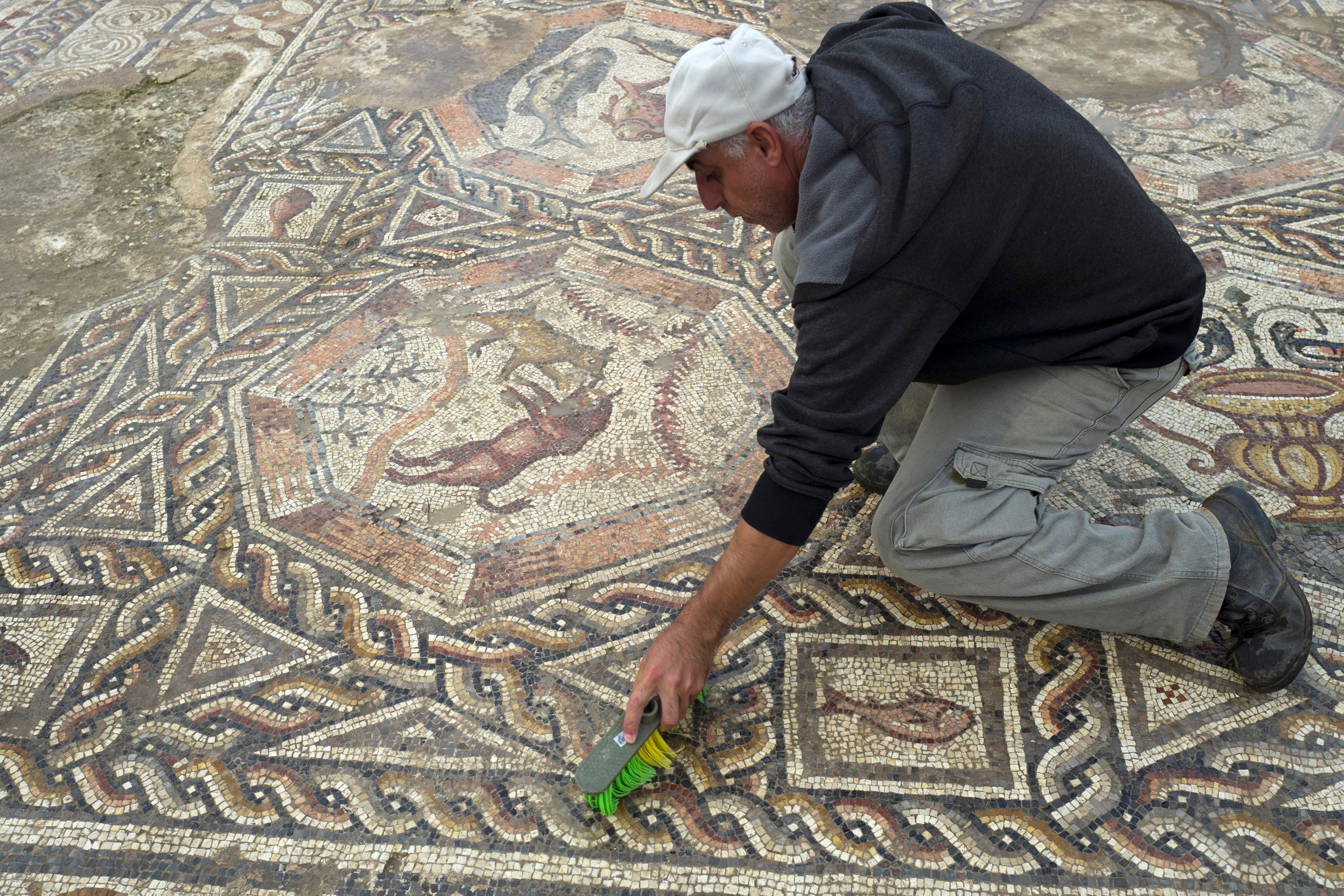 "Este era el suelo de una villa romana y lo que vemos es un magnífico mosaico realizado por artistas que llegaron hasta aquí desde el norte de África ” , declaró Haguit Torge, arqueóloga de la Autoridad de Antigüedades de Israel, a cargo de un yacimiento que fue descubierto durante la construcción de una autopista.