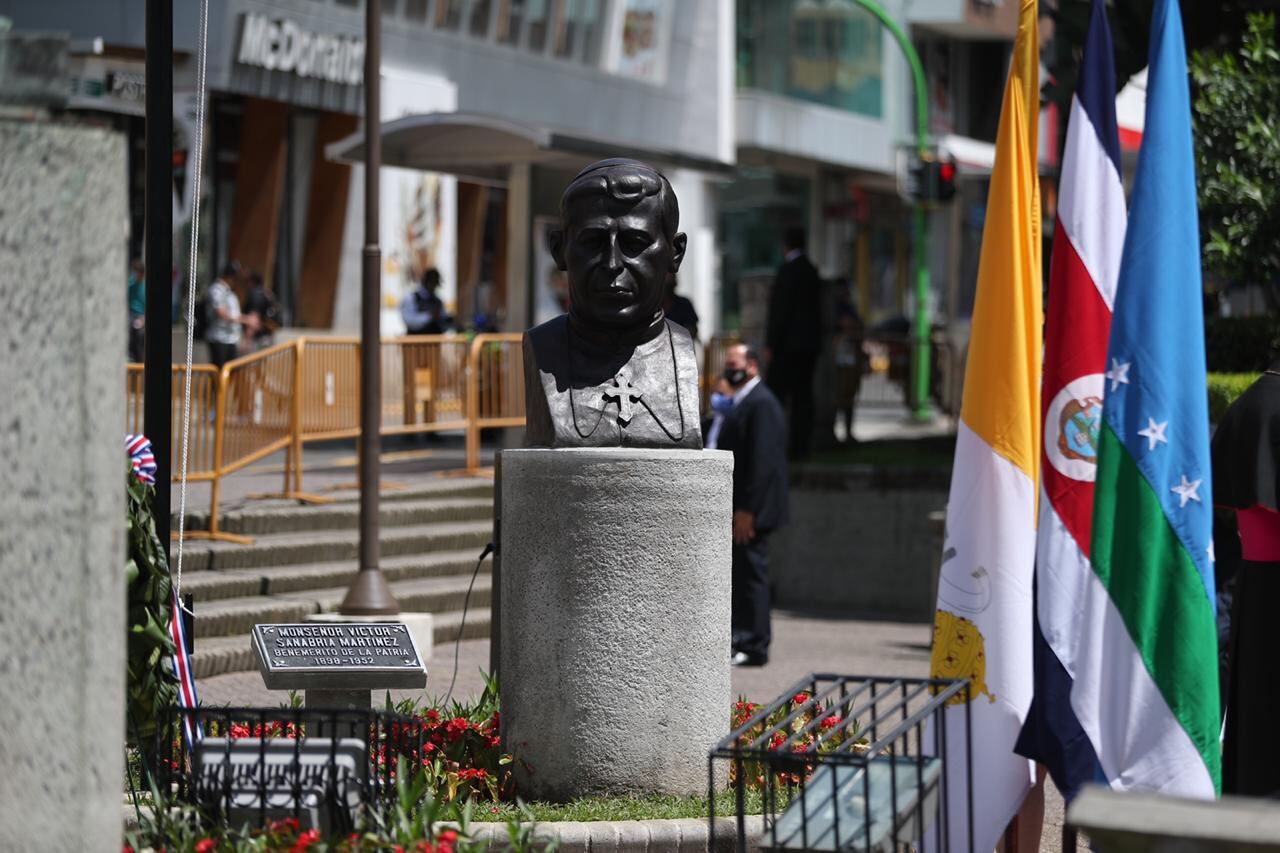Por este legado, la plaza de las Garantías Sociales, en el centro de San José, luce desde este martes un busto dedicado a quien fuera obispo de la diócesis de Alajuela y arzobispo de la arquidiócesis de San José. Se trató de una iniciativa de la Municipalidad de San José.