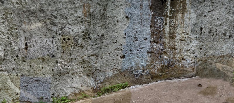 Ubicado en el cañón del río Cabuyo, podría decirse que era como una especie de Facebook precolombino: un muro de piedra de 50 metros de largo por 30 metros de alto en el que los pobladores precolombinos dejaron testimonio gráfico de su vida cotidiana.