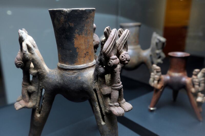 “Estos objetos tenían un uso exclusivamente ceremonial, pues eran parte de los ritos funerarios de estos grupos. En la muestra se exhiben dos tipos de jarrones correspondientes a dos fases culturales distintas”, explicó la curadora de arqueología de los Museos del Banco, Patricia Fernández.