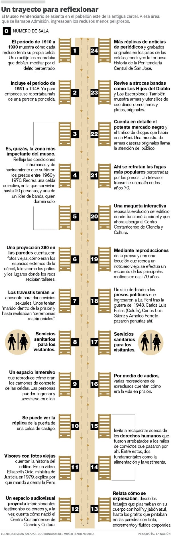 El lugar lleva a los visitantes a un periplo por las 24 celdas del pabellón este de la antigua Peni, donde fue el área de Admisión, apartado al que ingresaban los reclusos “menos peligrosos”.