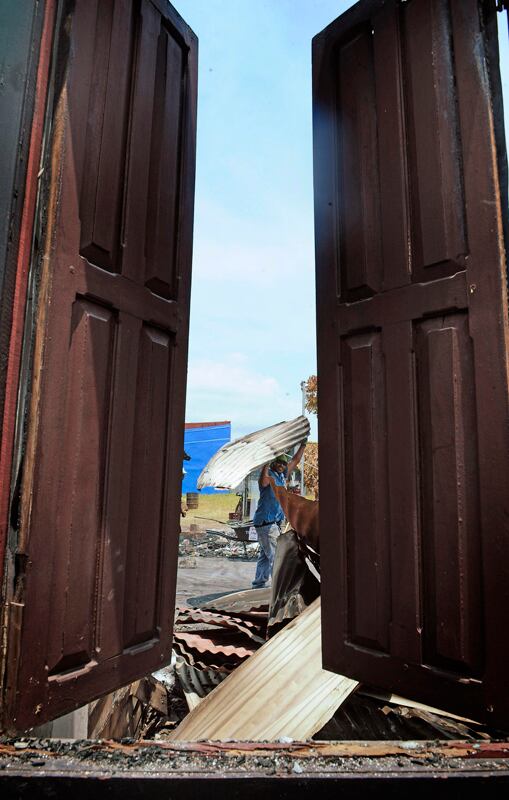 Limón. A una semana del incendio, un grupo de voluntarios trabajaba en la limpieza de lo que fuera el Liberty Hall, más conocido como el Black Star Line.