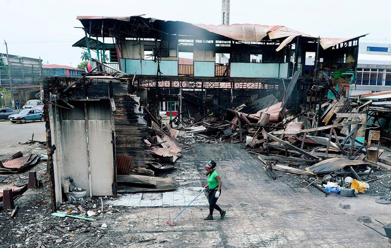 Empleados de la Municipalidad de Limón y personal de la Junta de Administración Portuaria y de Desarrollo Económico de la Vertiente Atlántica (Japdeva) se sumaron a los miembros de la Universal Negro Improvement Association (UNIA) para recolectar los escombros que dejó el fuego.