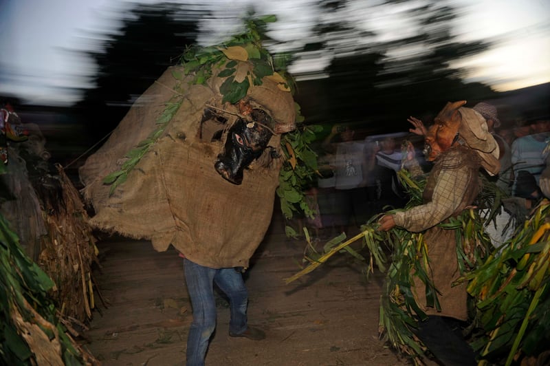 Estos personajes –ataviados con sacos de gangoche, hojas de plátano y máscaras talladas en madera– visitarán las primeras casas durante la madrugada y en la mañana del viernes se enfrentarán, por primera vez, a su archienemigo el toro.