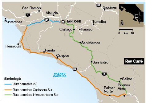 Ruta por la Costanera Sur: Desde San José se toma la ruta 27 para dirigirse a Jacó, Quepos, Dominical y finalmente, Palmar Norte de Osa.. Hay que seguir 28 kilómetros hacia el noreste para llegar a Rey Curré.