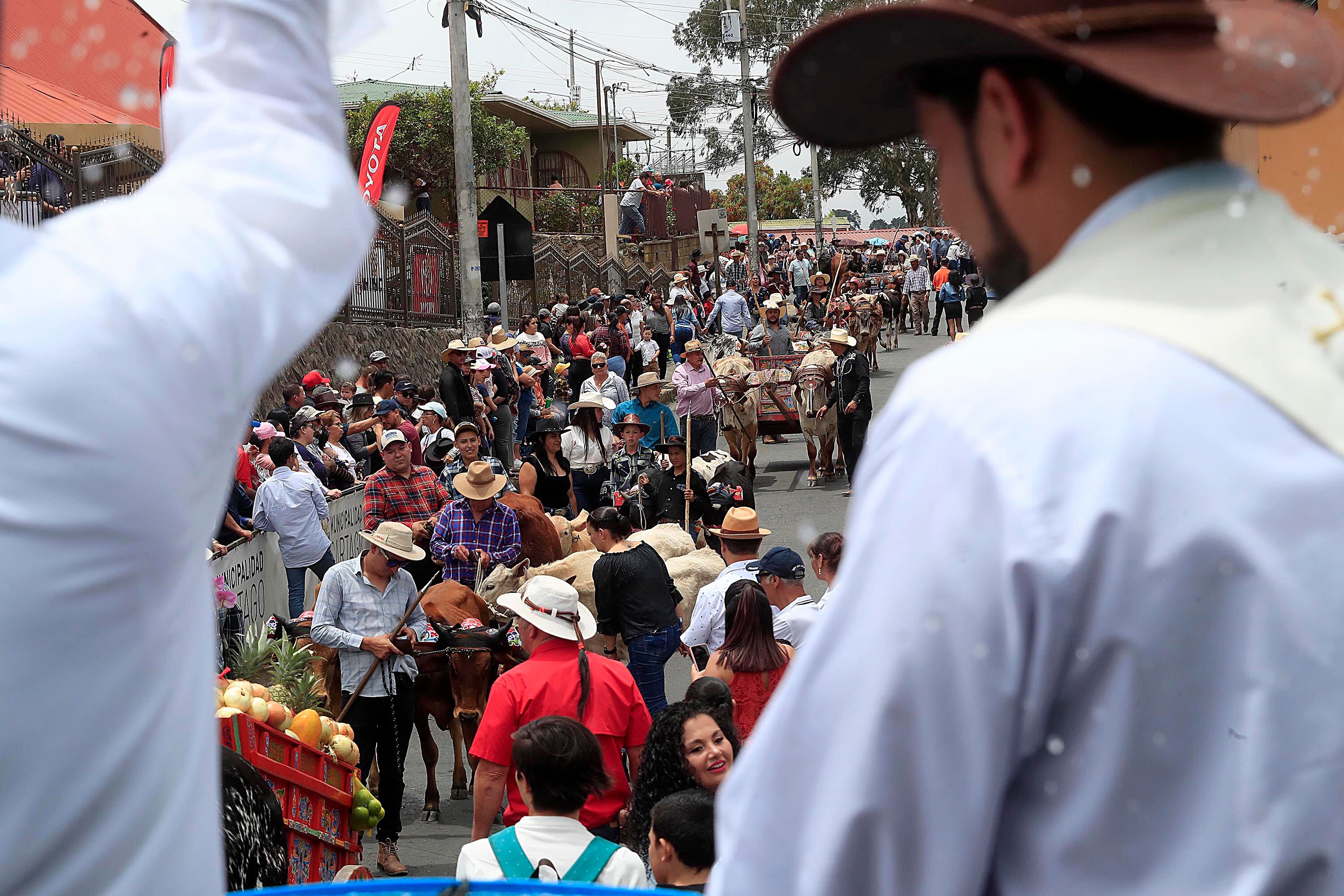 Decenas de lugareños se reunieron frente al templo parroquial para disfrutar la llegada del tradicional desfile en honor al santo patrono de los agricultores. Desde las 9 a. m., 126 yuntas de bueyes, debidamente enyugadas y dirigidas por sus dueños, grandes y pequeños, llenaron de alegrías las calles.
