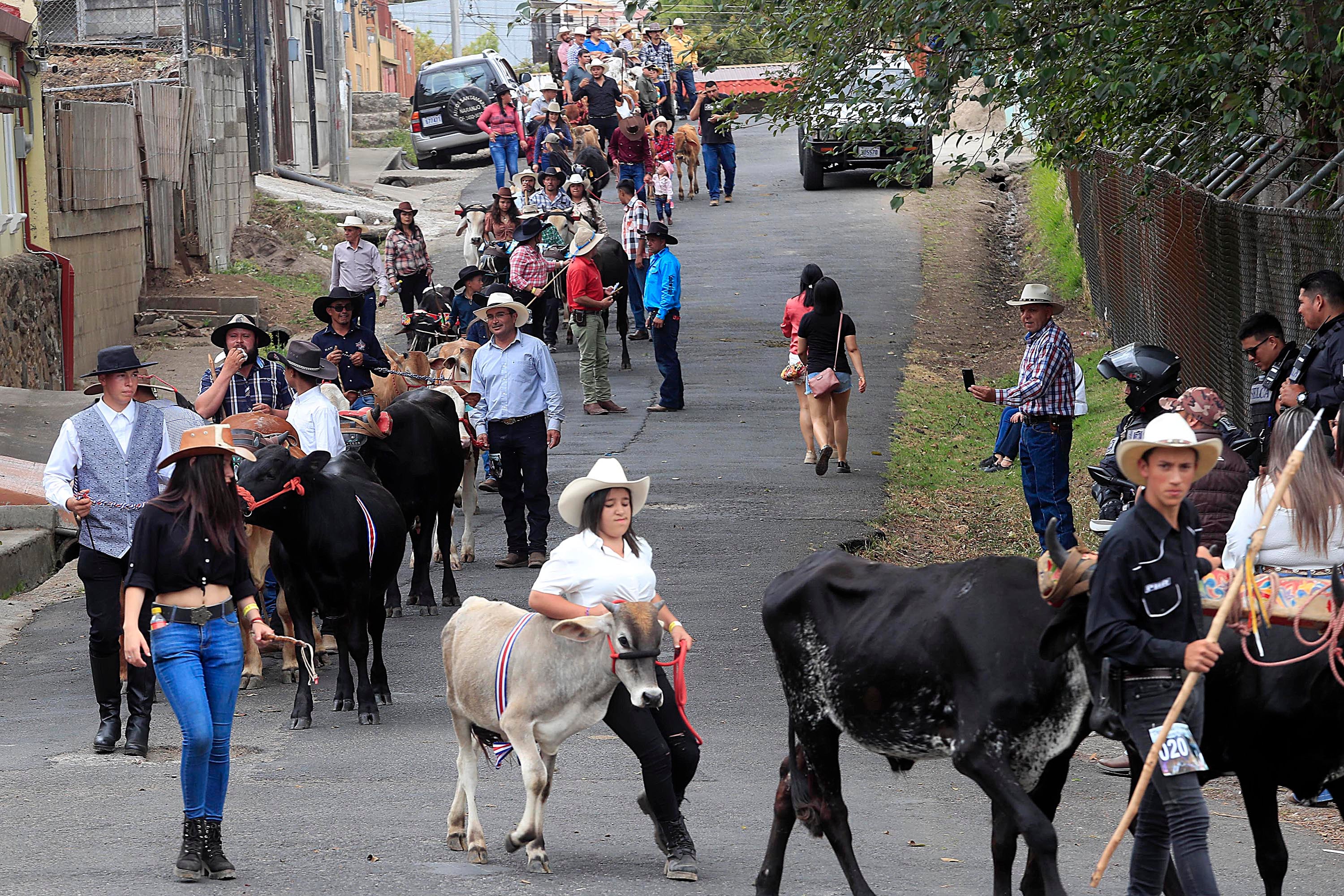 Mientras boyeros y caballistas caminaban hacia el parque al son de cumbia, quebradita o ranchera, en el templo, los sacerdotes Randall Zamora y Anthony Aragón celebraban la misa, pues no podía faltar la ceremonia para elevar oraciones a San Isidro y pedirle su intercesión por una buena cosecha.