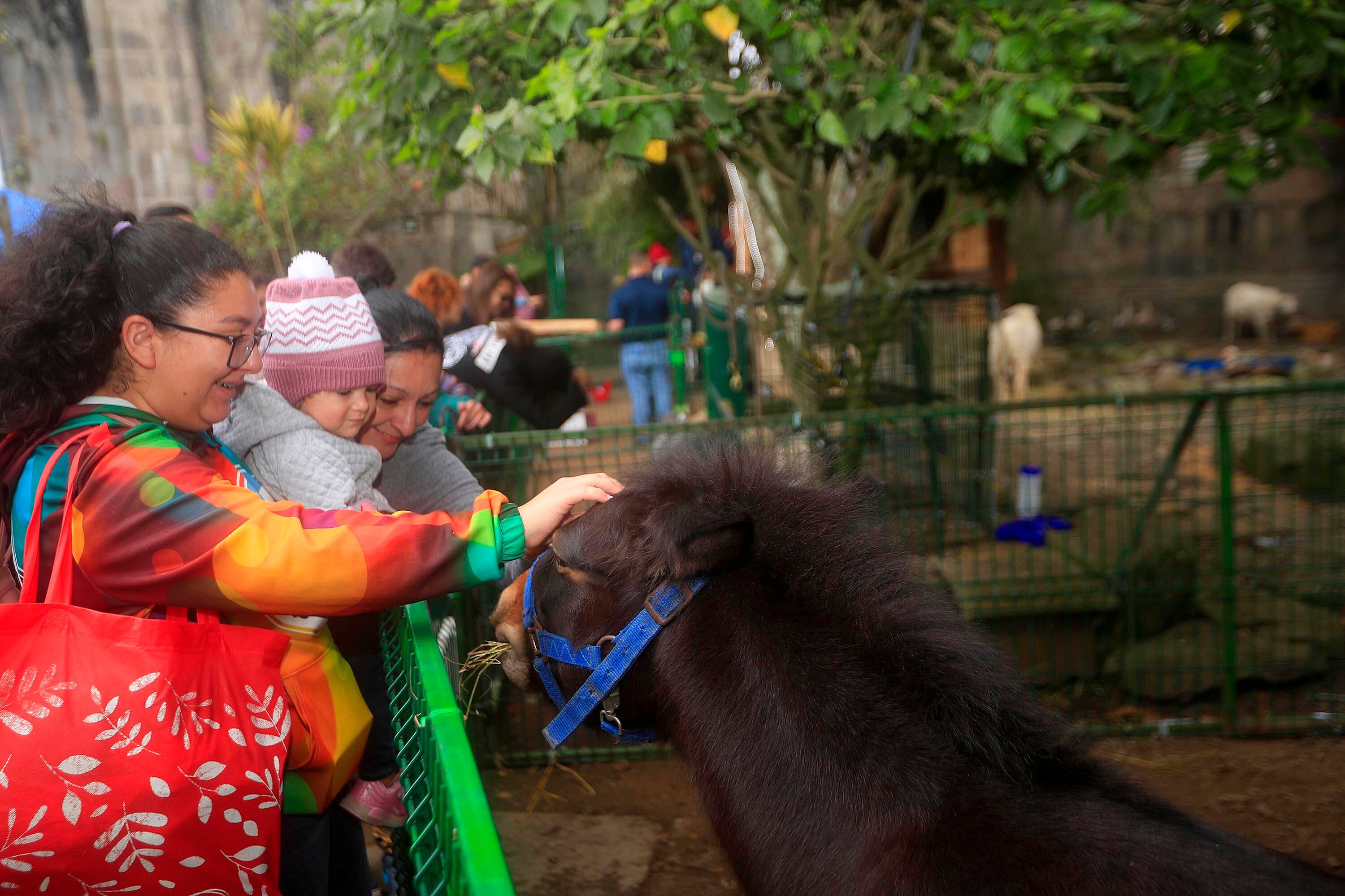 Adriana Araya, de año y tres meses, fue una de las niñas que acudió con sus allegados y compartió directamente con animales como el burro y algunas ovejas.