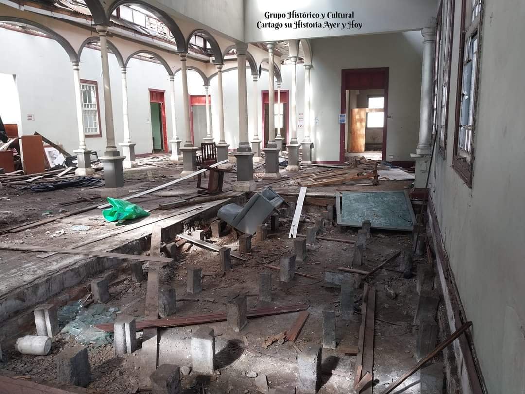 Los vándalos, de día y de noche, se roban el mobiliario, adornos e incluso el techo del inmueble, ubicado a 50 metros al noroeste de la Municipalidad de Cartago. El edificio es centro de un litigio.