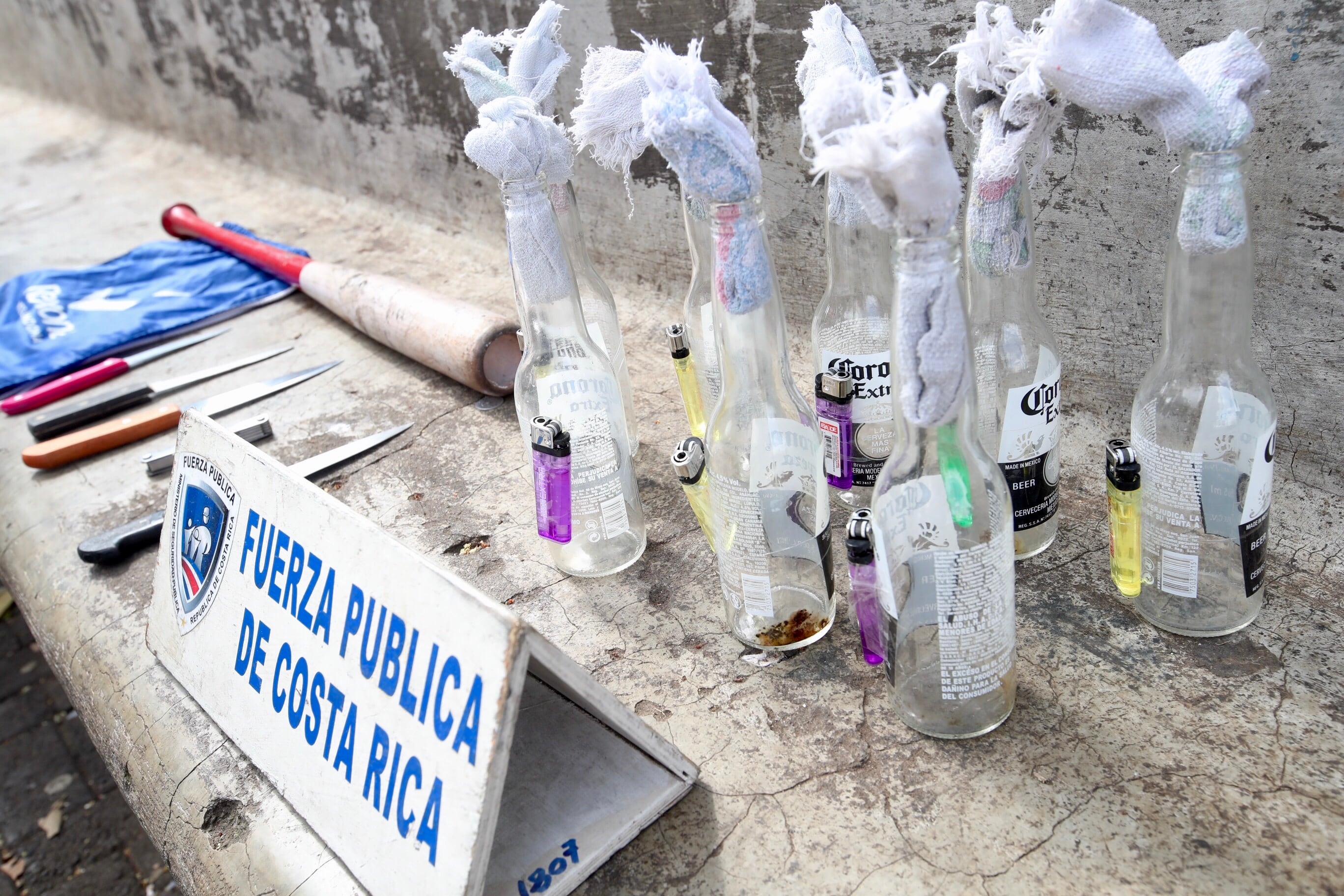 “Es lamentable (la manifestación), porque es una incitación al odio y a la violencia”, afirmó Randall Picado, director regional de la Fuerza Pública de San José, quien confirmó que decomisaron ocho bombas molotov, cuatro puñales, un bate de béisbol y cuchillas.