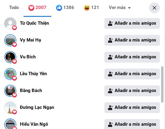 El material acumulaba la noche de este miércoles cerca de 4.500 reacciones entre me encanta (2.002), me gusta (1.386) y me divierte (121). En las reacciones, los “me encanta” vienen principalmente de cuentas vietnamitas.