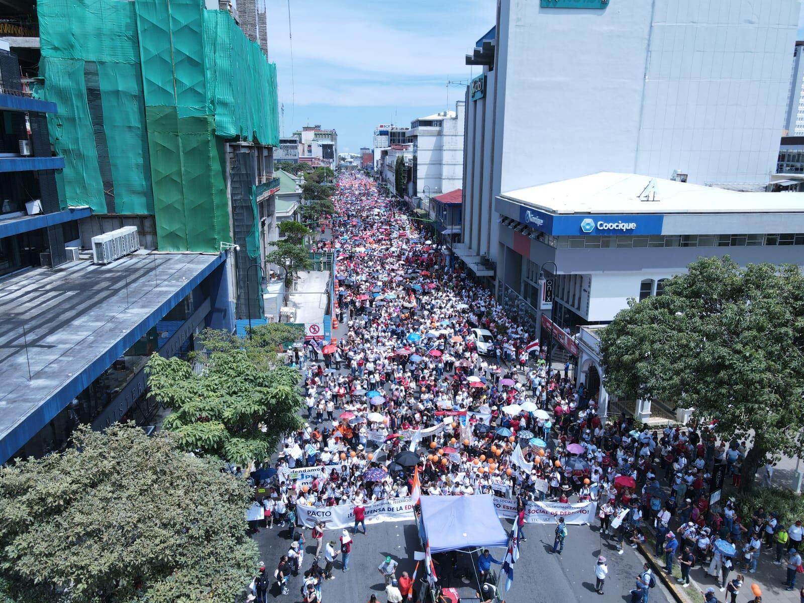 Los grupos de manifestantes se encontraron a las 11 a. m. en la plaza de la Democracia; uno provenía desde el parque de la Merced, por la avenida segunda, y el otro desde Montes de Oca, luego de salir desde la UCR.