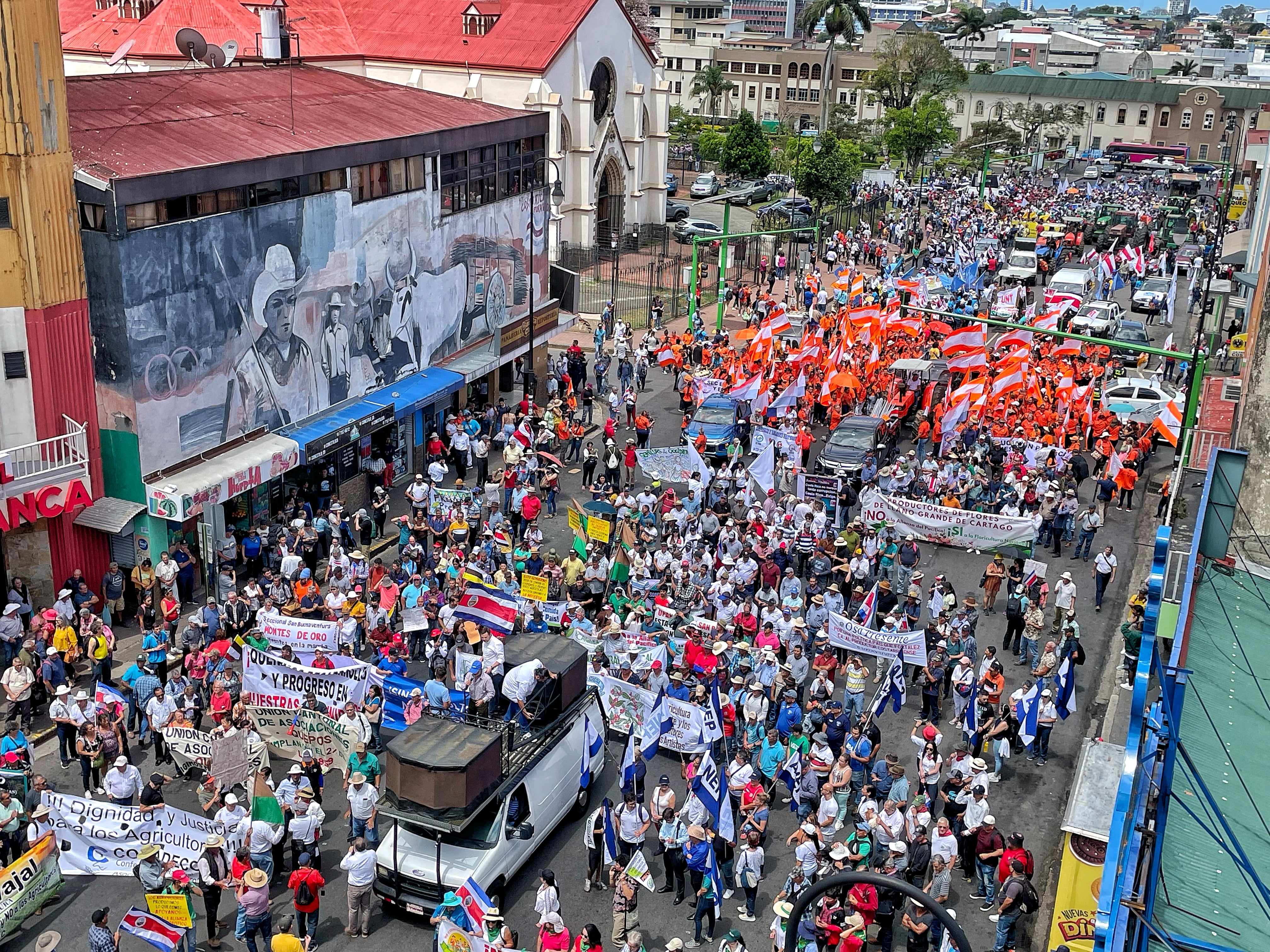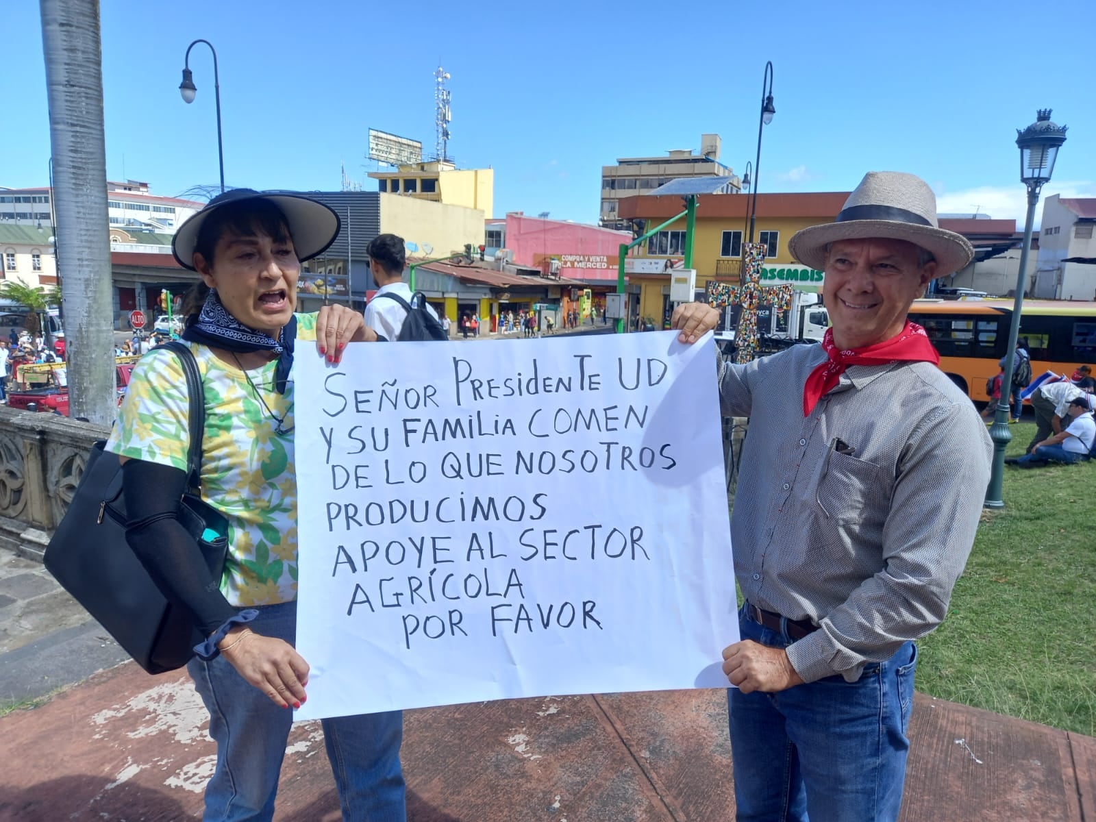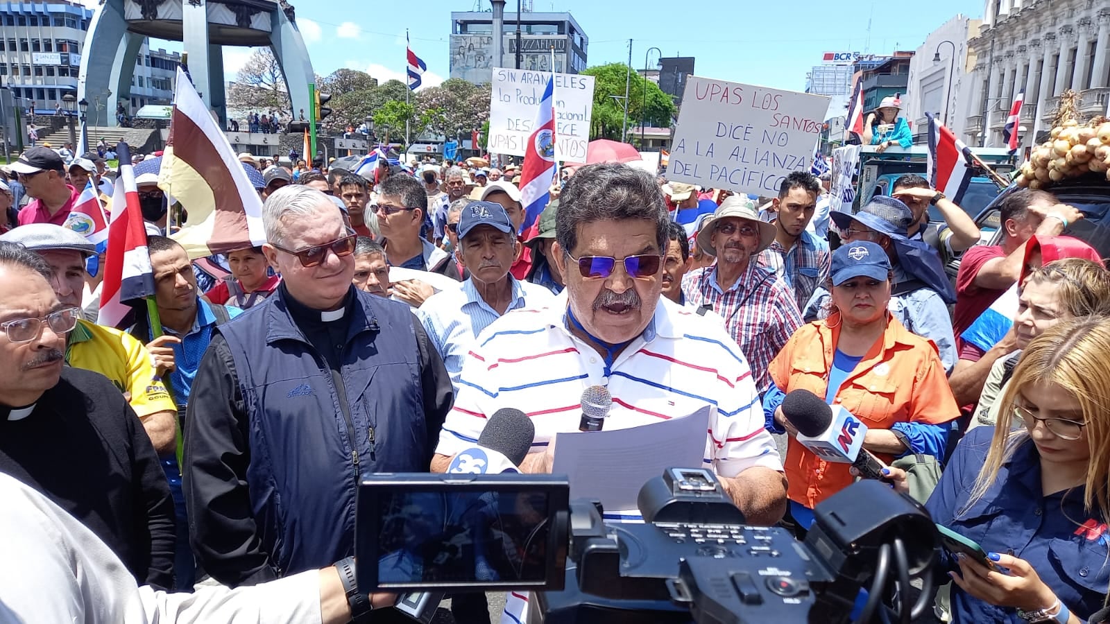 Mientras la multitud marchaba, el secretario general de la Unión Nacional de Productores Costarricenses (UNAG), José María Oviedo, tomó el micrófono y leyó a través de los parlantes una carta que envió al presidente de la República.