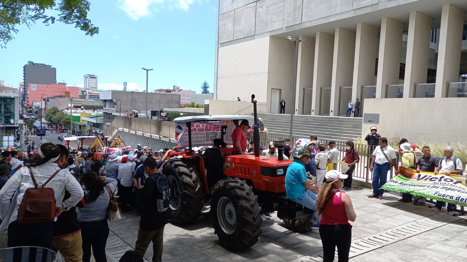 La marcha comenzó a aproximarse a la Asamblea Legislativa después del mediodía. Los chapulines y tractores llegaron a la entrada del Congreso, rodeada por vallas de seguridad y con la presencia de varios oficiales de la Fuerza Pública.