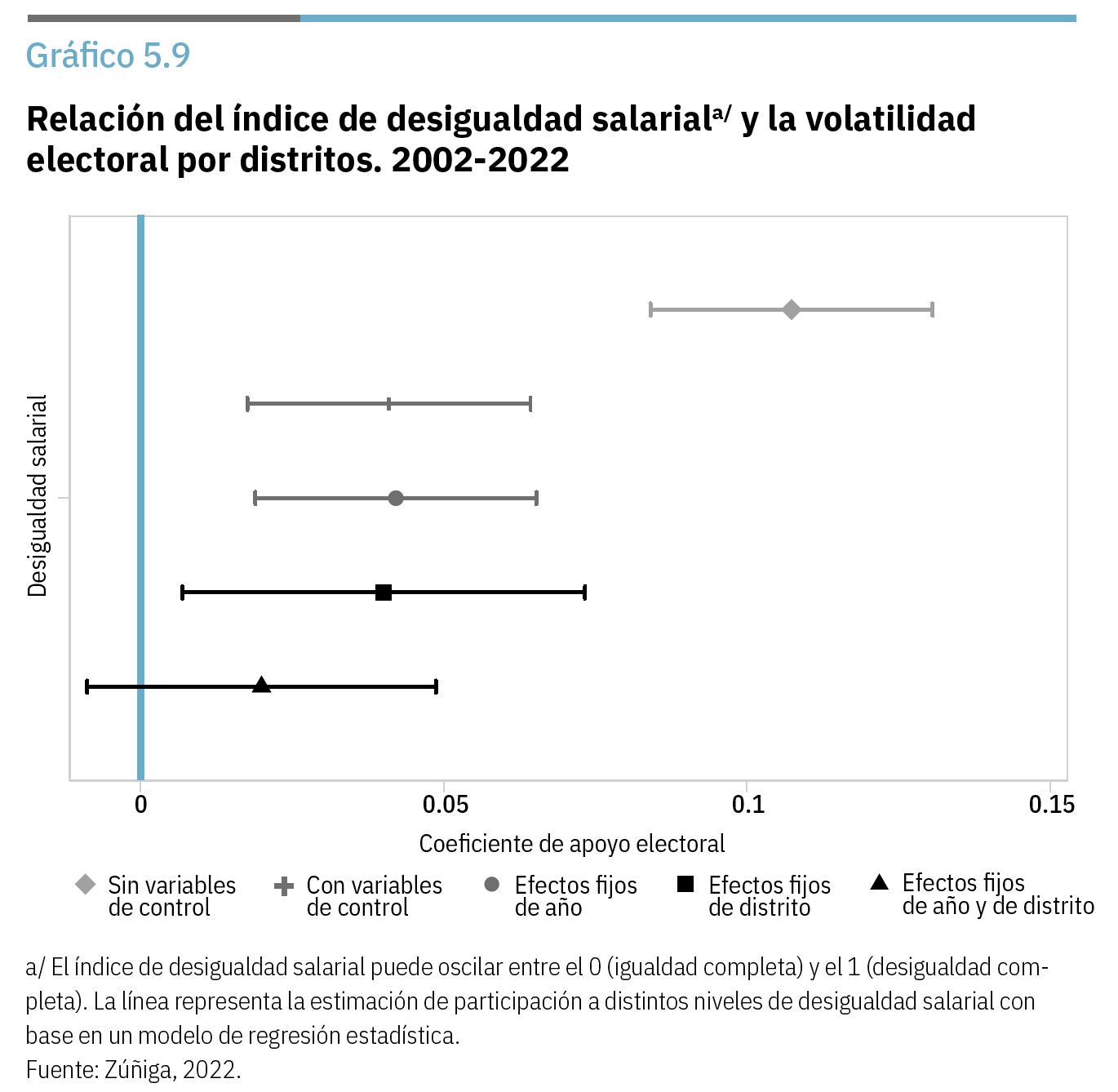 “Se encontró que la relación entre el índice de desigualdad salarial y la volatilidad electoral es positiva: cuanto mayor es la desigualdad, mayor es la volatilidad de cada distrito. Este resultado es particularmente útil para comprender los factores que influyen en el apoyo que reciben algunos partidos políticos nuevos”, señaló el Estado de la Nación.