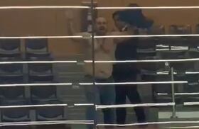 Se quitó la camisa, empezó a insultar y amenazar, y golpeó violentamente los ventanales que dan al plenario, los cuales están seis metros por encima de ese salón.