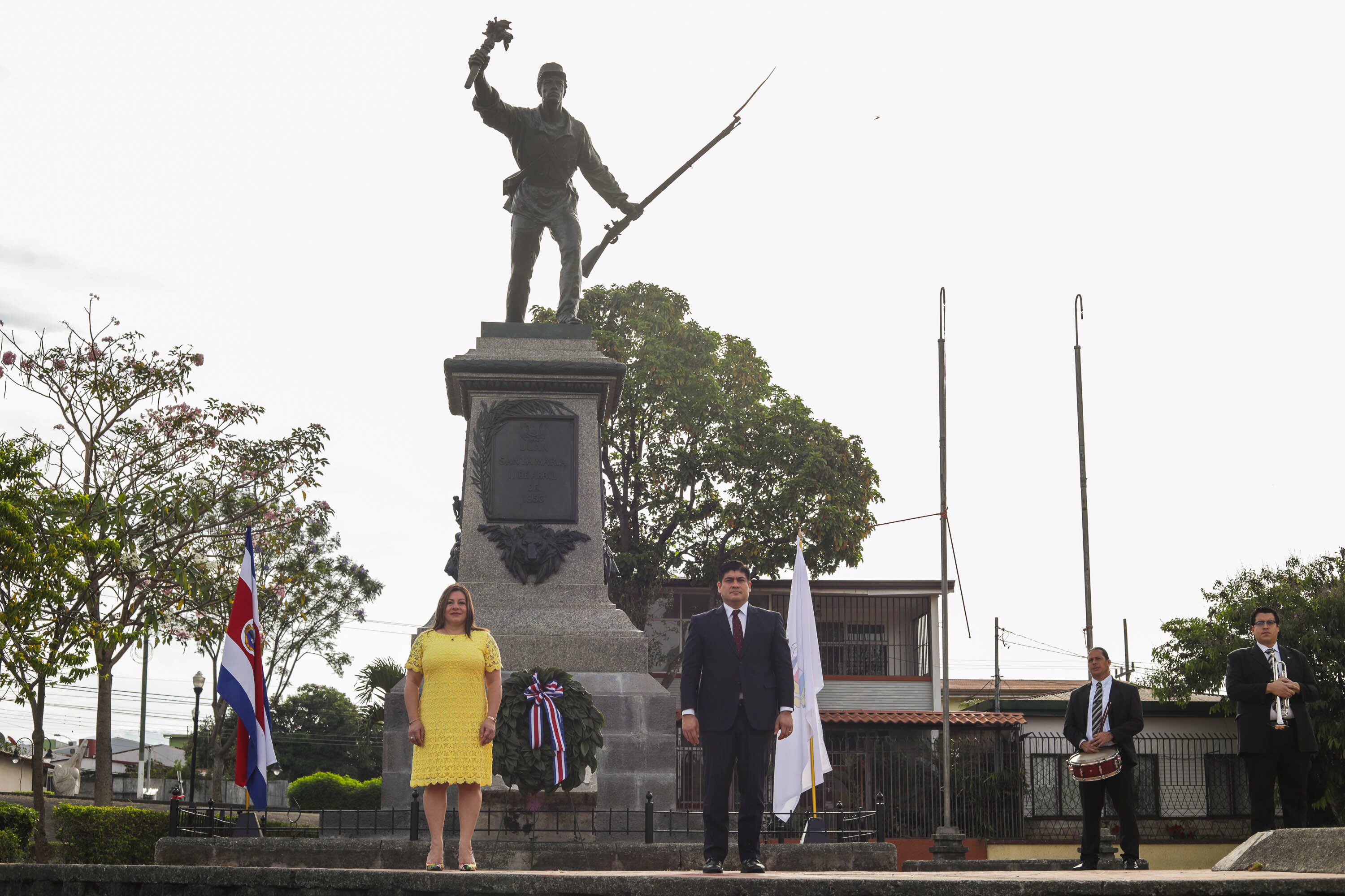 “Juan Santamaría representa el valor y el coraje de los y las costarricenses en los momentos más difíciles. Ese recordatorio de su desprendimiento por la patria, como lo tuvieron muchos otros compatriotas, nos llega hoy en un momento de necesidad de unidad, donde todos tenemos que sacar lo mejor de nosotros”, dijo Alvarado.