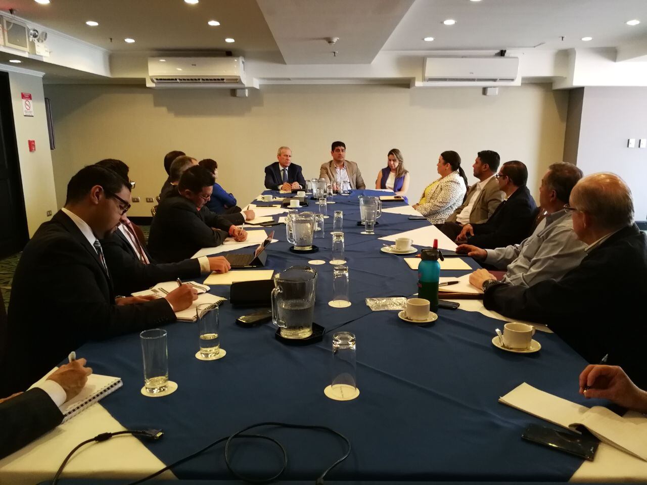 Alvarado se reunió con la junta directiva de Asociación de Empresas de Zonas Francas (Azofras), en el hotel Crown Plaza, en San José.