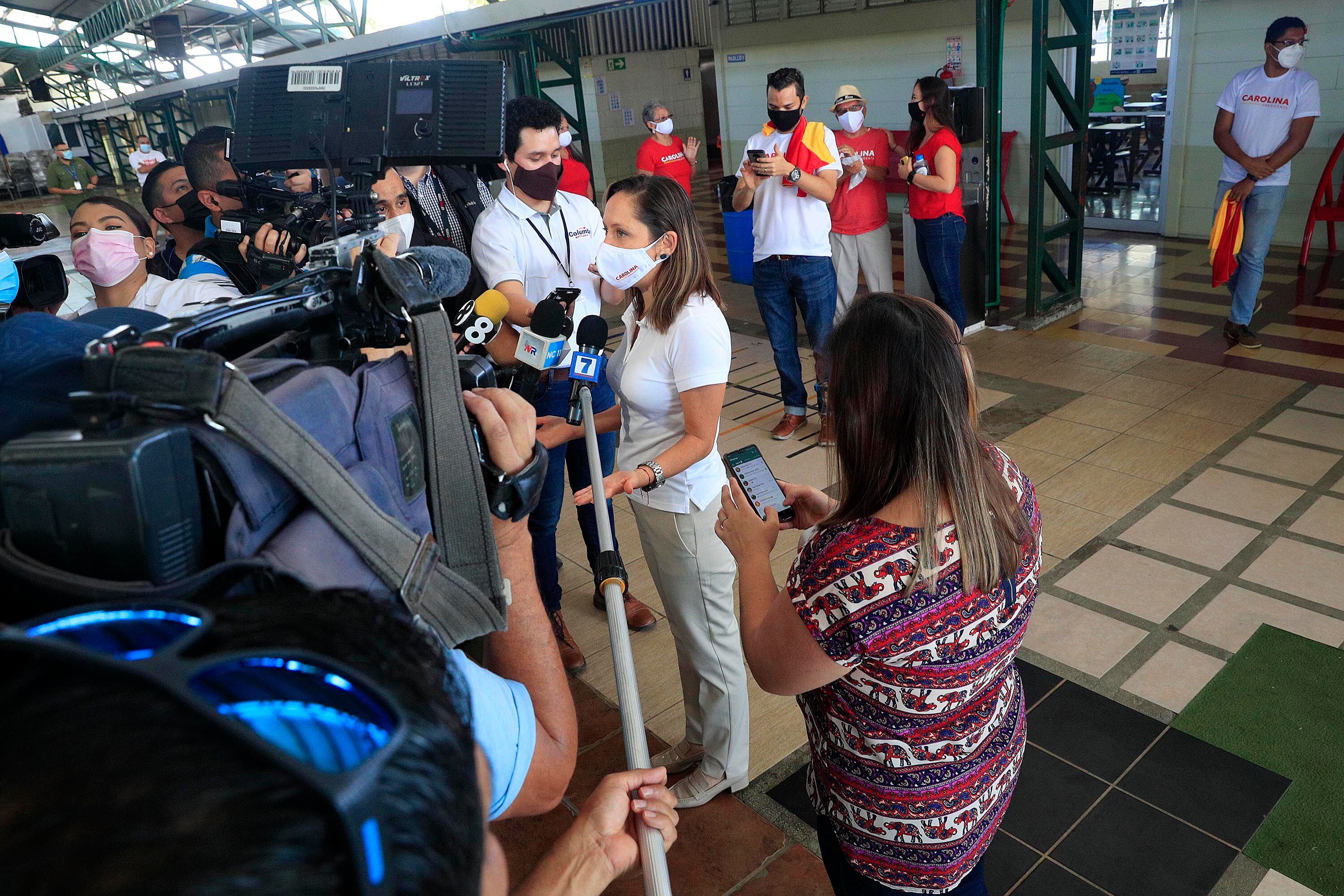 Hora y media después, su contrincante, Carolina Hidalgo, votó en la Escuela José de San Martín, en San José de Alajuela.