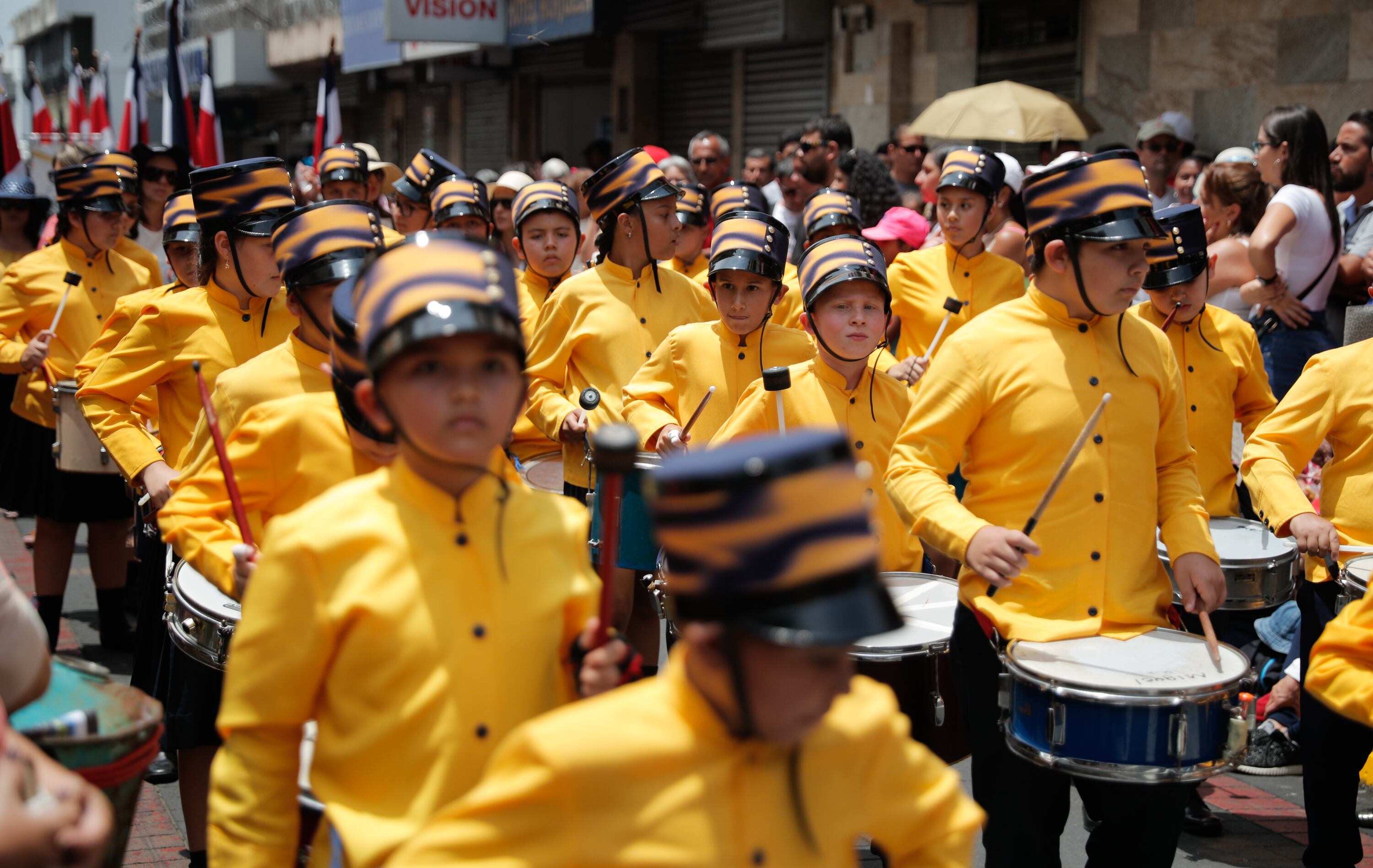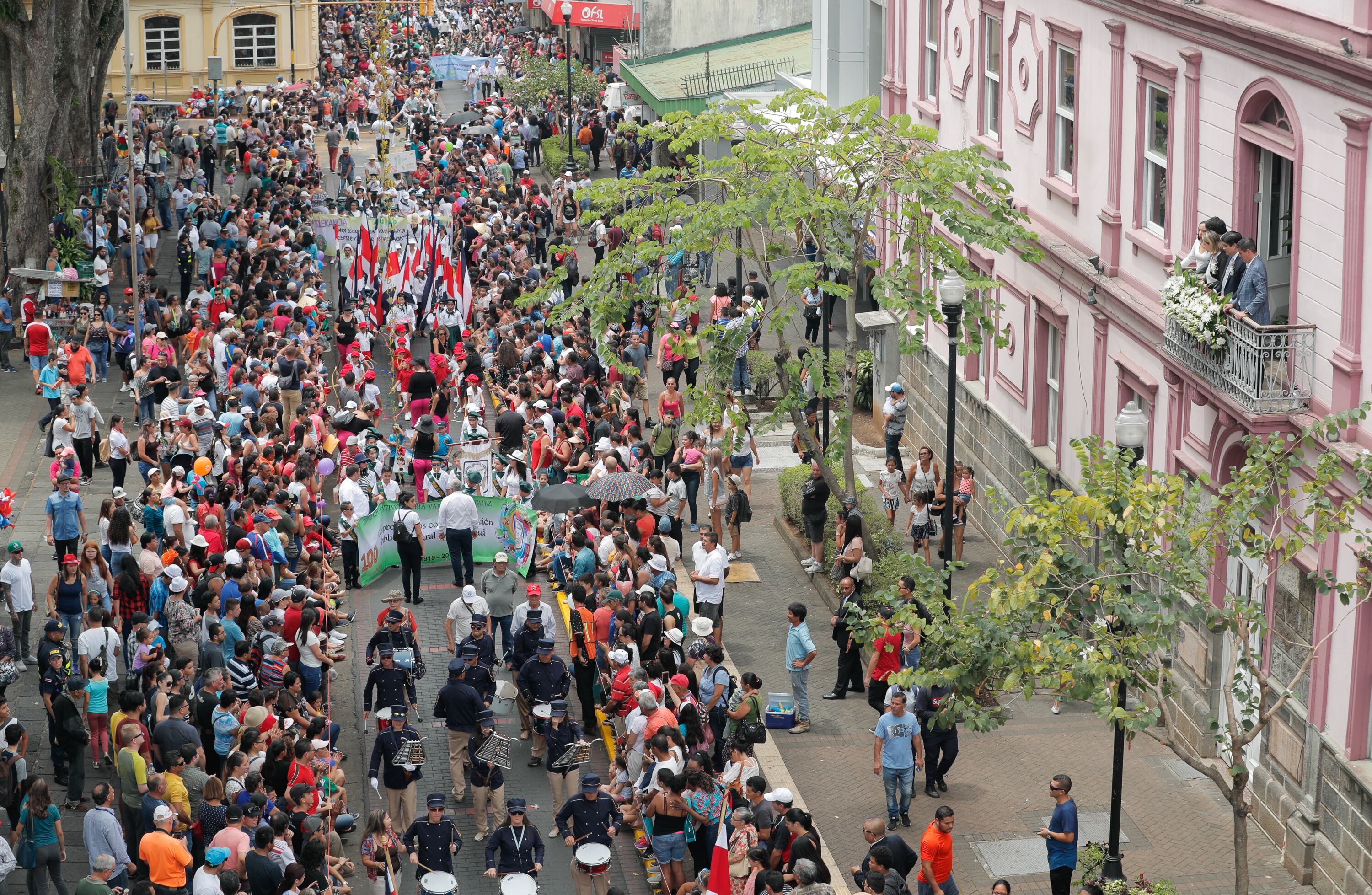 El desfile arrancó minutos antes de las 10 a. m., al término del acto protocolario que dirigió el presidente Carlos Alvarado en el parque Juan Santamaría.
