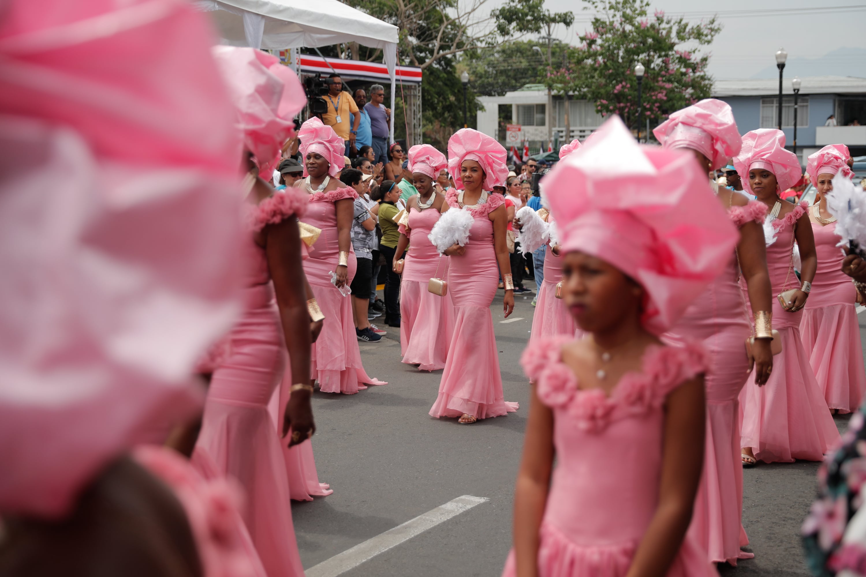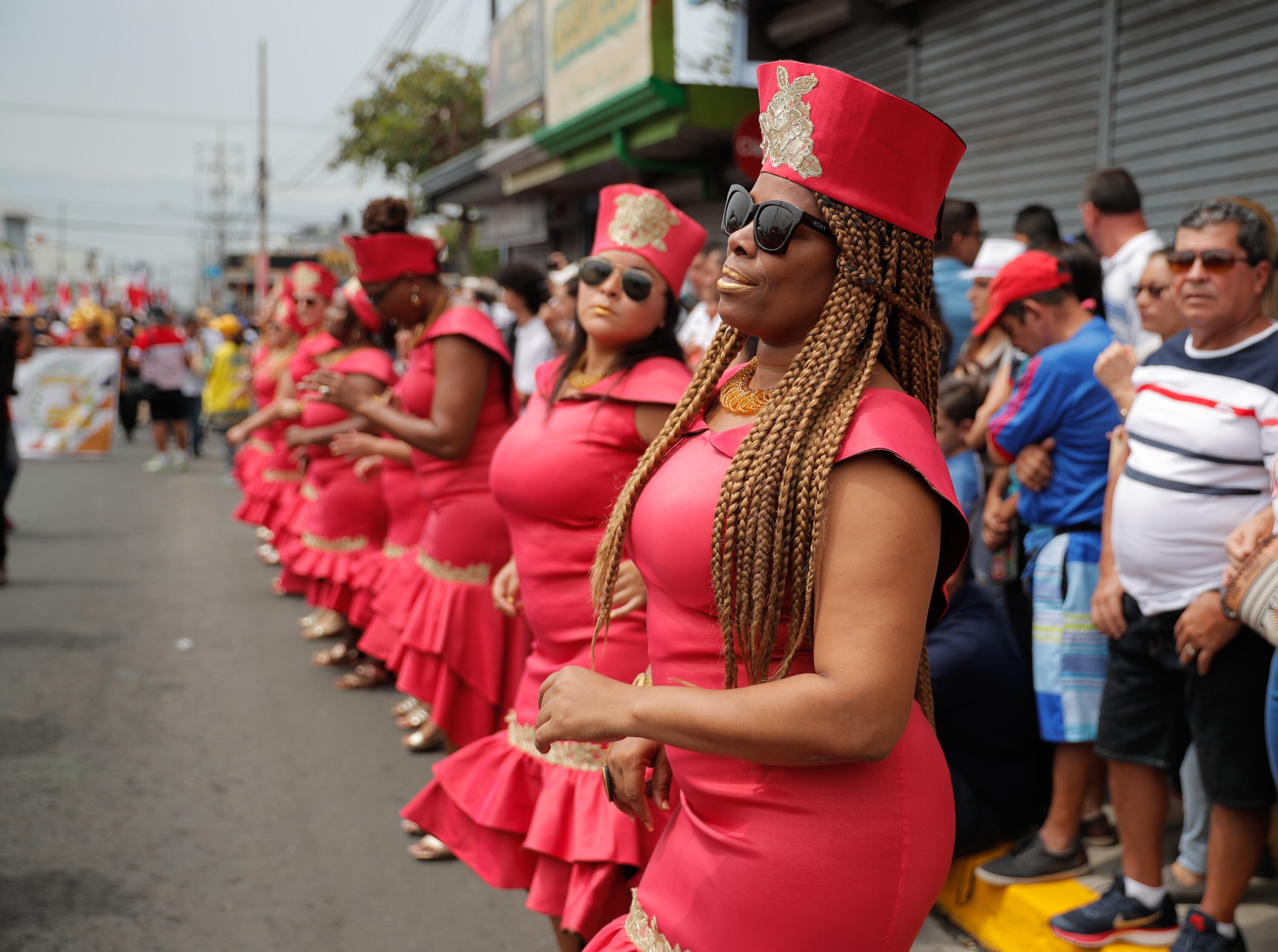 Uno de ellos fue Afro Community and Pluricultural, de Siquirres, compuesto por mujeres y hombres de distintas edades, quienes vistieron trajes rojos y café.