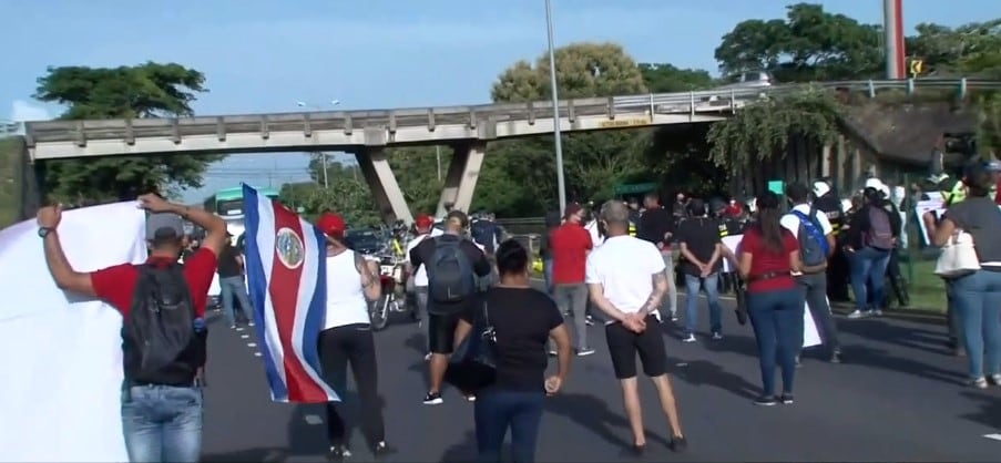 Su llamado trasciende luego de que la Fuerza Pública detuviera, este viernes en la mañana, a seis personas por bloquear el paso en la ruta 27, que comunica San José con puerto Caldera, en protesta por el cierre comercial ordenado por el Ministerio de Salud, entre el 10 y el 21 de agosto, en los cantones con alerta naranja.