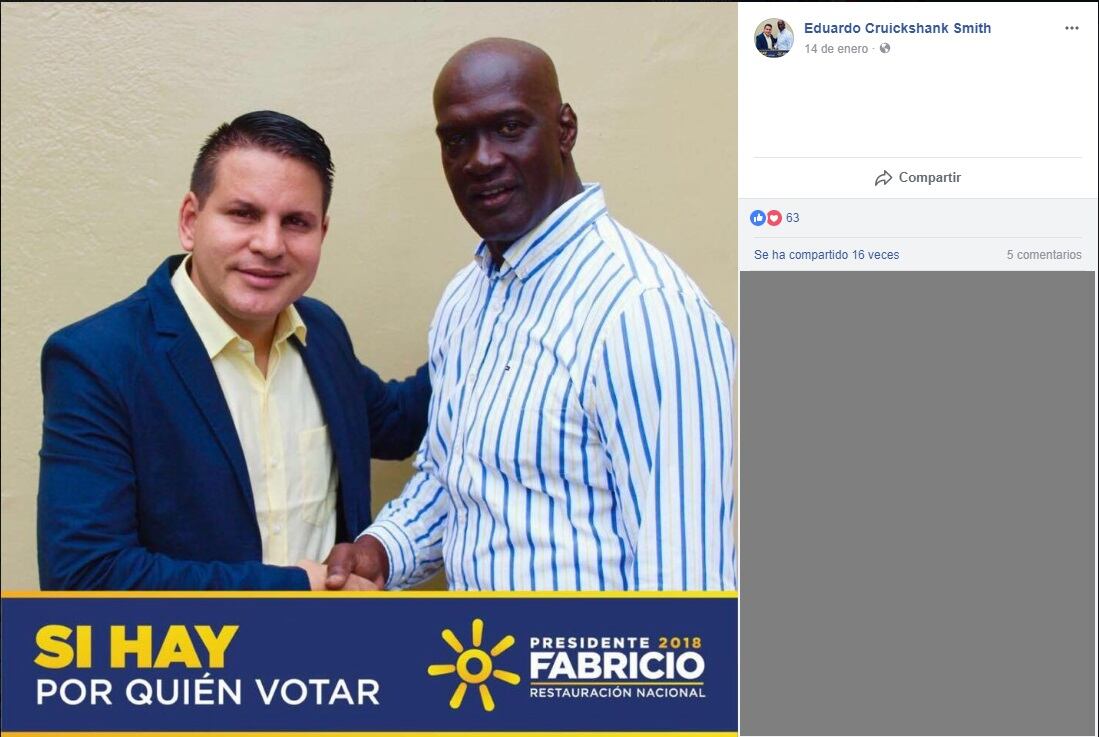 Eduardo Cruickshank, diputado electo de Restauración Nacional por la provincia de Limón, niega haber compartido una imagen contra las personas homosexuales que estuvo en su perfil de Facebook desde las 6:21 a. m. del domingo hasta el final de la tarde de este lunes.
