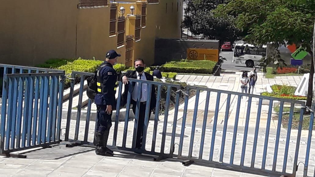 Como es usual en días de protesta, la seguridad del Congreso acordonó con verjas metálicas el edificio y la Fuerza Pública cerró algunos accesos, como buena parte de las calles que estám entre el viejo y nuevo edificio del Congreso, y entre el Parque Nacional y el Tribunal Supremo de Elecciones (TSE).
