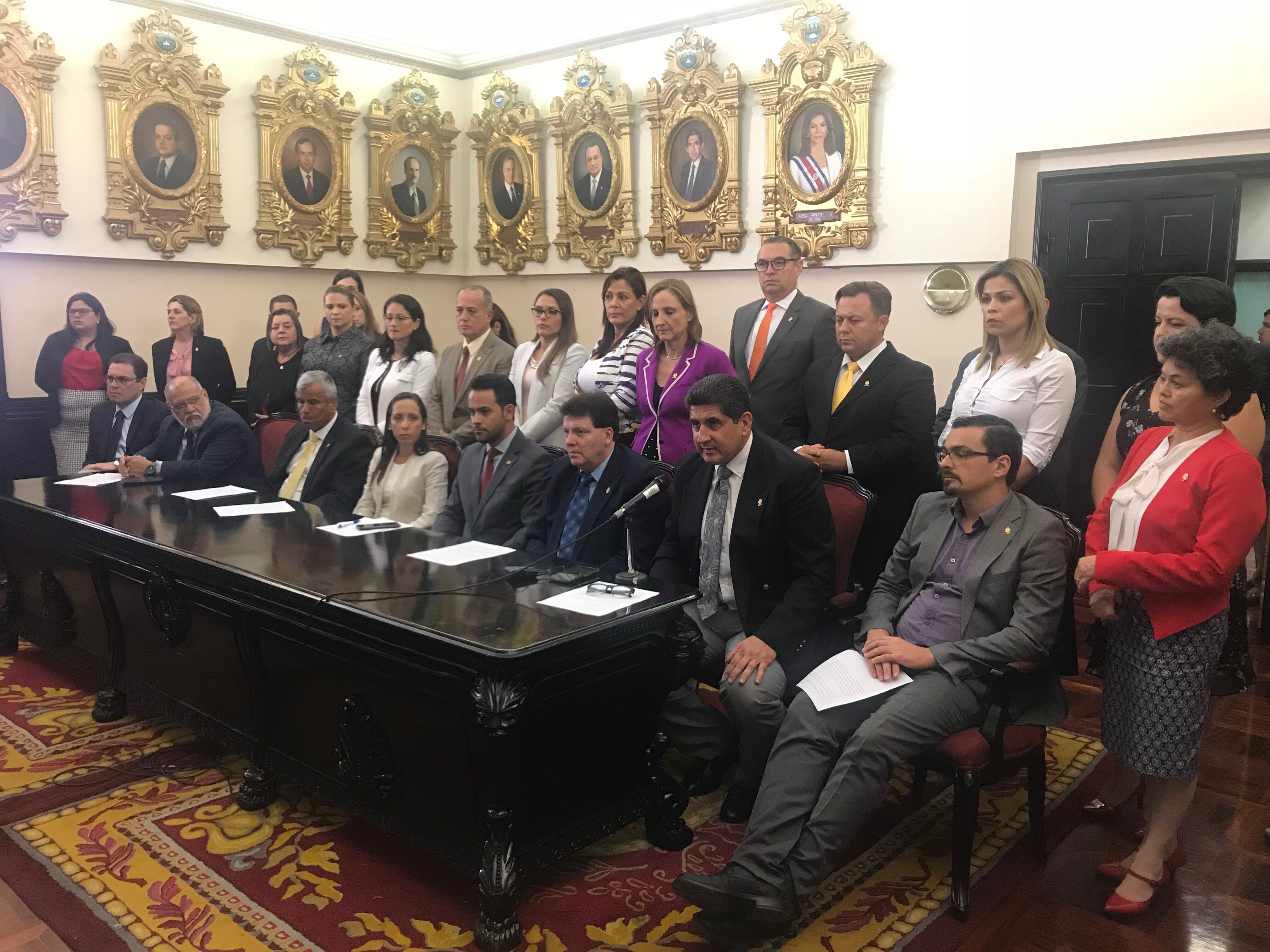 Los jefes de las siete fracciones parlamentarias y la presidenta del Directorio legislativo, Carolina Hidalgo, firmaron y anunciaron un compromiso para consolidar esa norma sancionatoria.