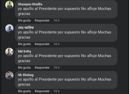 Otro de los mensajes que se repite constantemente es “yo apollo (sic) al presidente por supuesto no afloje muchas gracias”. Decenas de troles lo publicaron exactamente igual.