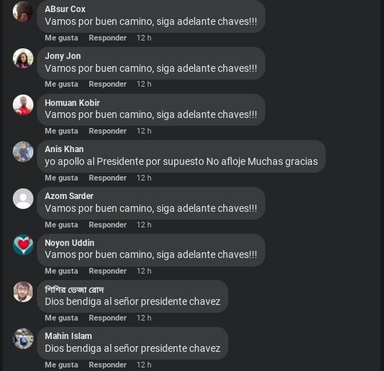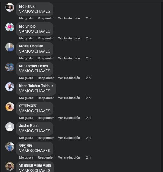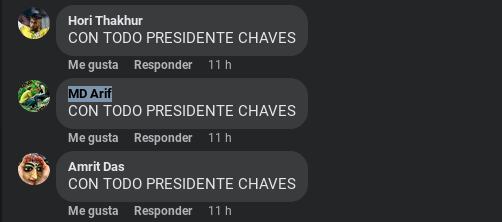 Uno de los mensajes repetidos por varias cuentas trol es: “Con todo presidente Chaves”. Al ingresar a los perfiles, es posible notar que no tienen información personal ni fotografías fidedignas. Incluso, sus publicaciones anteriores están en otros idiomas, no en español.