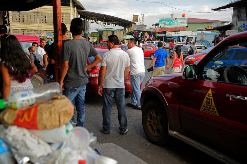 La gente camina entre los carros en todas direcciones buscando precios en los puestos que parecen encaramados, unos sobre otros, en esta calle donde termina Costa Rica.