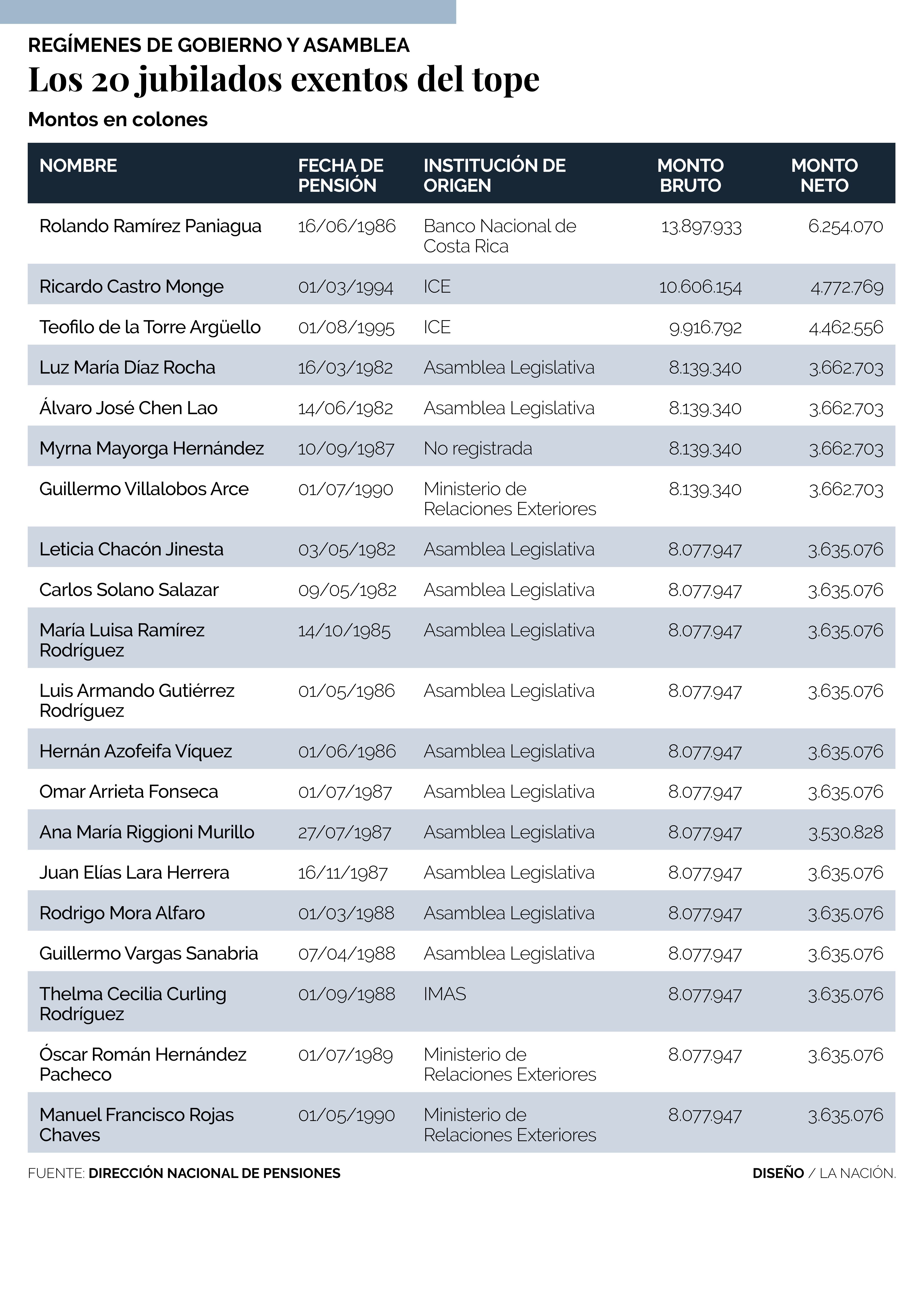 Sin embargo, Rolando Ramírez no es el único que se salvará del tope. De hecho, la mayoría de los pensionados de lujo se eximirá.