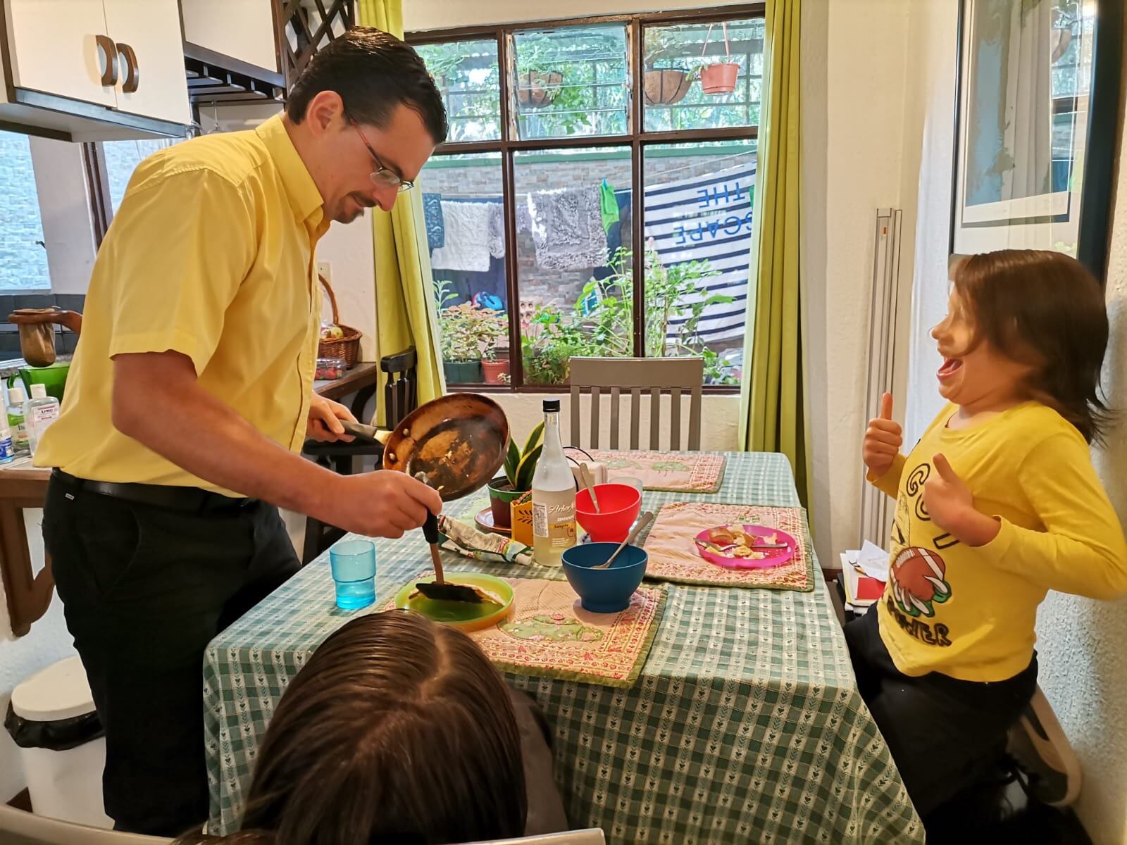 A eso de las 7 a. m. empezó la agenda pública del aspirante de Nueva República Fabricio Alvarado. El periodista, acompañado por su esposa Laura Moscoa, entró a la soda Willi’s en el centro de Desamparados para un desayuno fuerte que incluyó frutas, pinto, huevo, tocineta y plátanos maduros. En las afueras, algunas familias y adeptos al partido esperan la salida del candidato para saludarlo.
