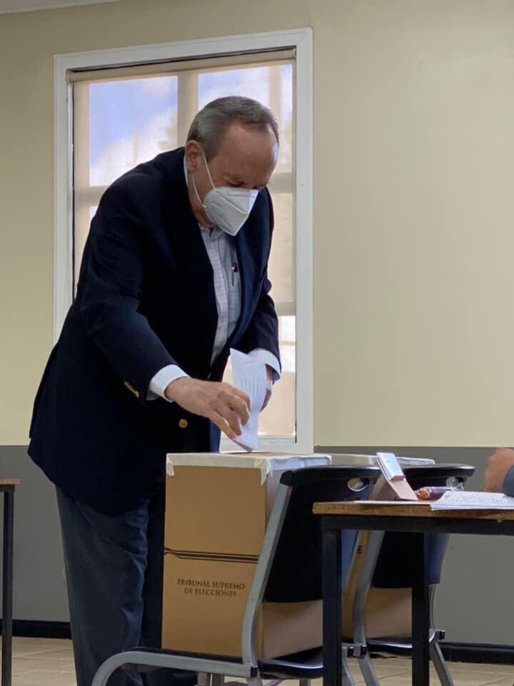 El exliberacionista, de 74 años, quien también es candidato a diputado por San José, indicó que le han reportado movilización de simpatizantes de su partido en todo el país. Afirmó que como los partidos ya no tienen los centros de control que solían tener en el día de las elecciones, ahora solo se pueden hacer estimaciones cualitativas, y añadió que su expectativa es que los votantes indecisos no se hayan ido por los partidos que lideraron las encuestas. Sus declaraciones trascendieron poco después de la 1:45 p. m. cuando votó en la escuela Isabel la Católica, en Río Oro de Santa Ana.