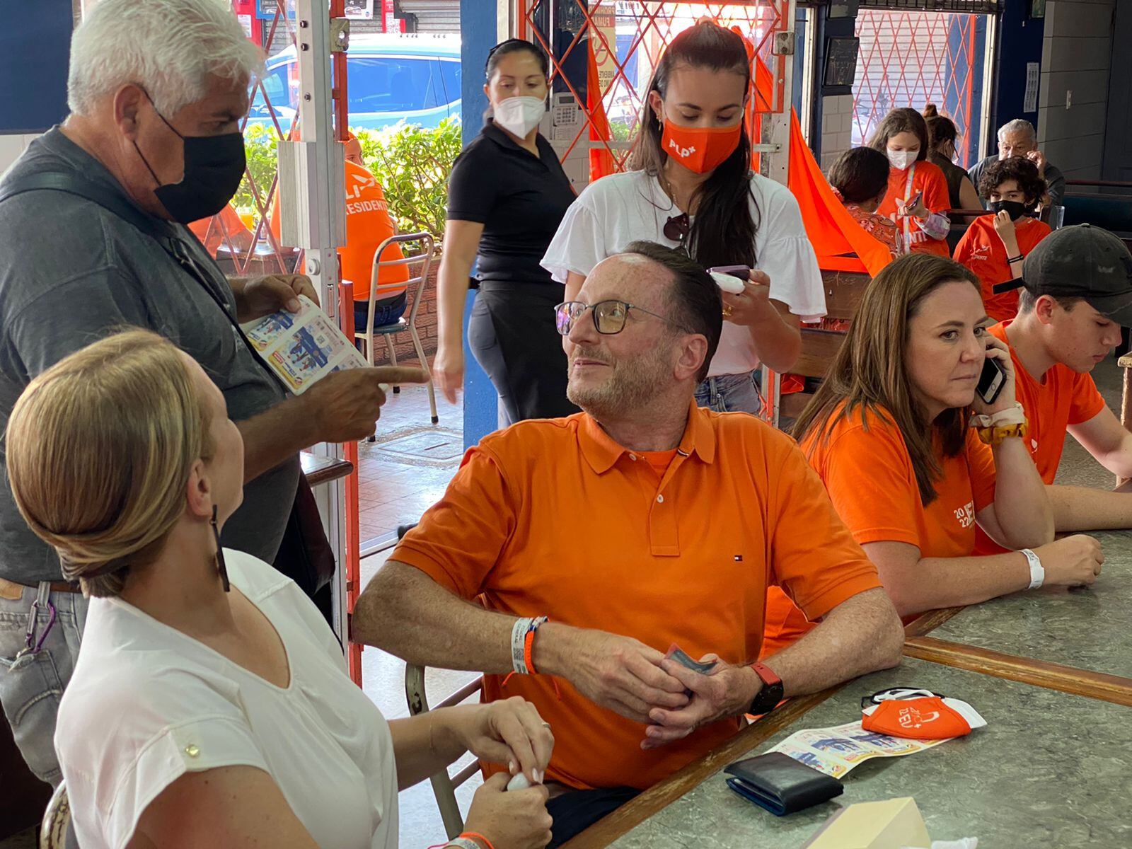 El candidato presidencial Eli Feinzaig, del Partido Liberal Progresista, fue el primer aspirante en ejercer el derecho al voto este 6 de febrero. Primero acompañó a su esposa Rosi Weisman y después votó él. Ambos fueron seguidos de cerca por una bulliciosa caravana anaranjada de vehículos, banderas, cláxones y votantes escazuceños.
