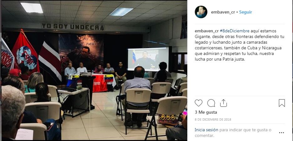 También en el salón de Undeca se celebró el “Día de Lealtad y Amor al Comandante Hugo Chávez”, según publicó la Embajada de Venezuela en Costa Rica en sus redes sociales el 8 de diciembre.