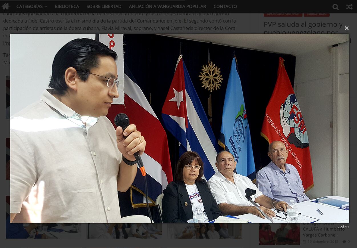 El 24 de noviembre, el periódico digital Libertad, órgano del Partido Vanguardia Popular, informó: “Costa Rica dedica a Fidel Castro el XI Encuentro de solidaridad con Cuba”.