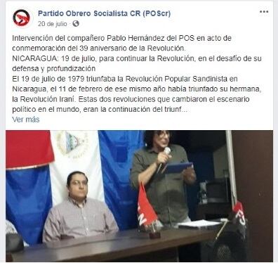 El 19 de julio, el embajador nicaragüense estuvo en la mesa principal de un acto para celebrar el aniversario número 39 de la revolución sandinista, en la Casa Sindical Calufa (Carlos Luis Fallas), en barrio Aranjuez, San José.