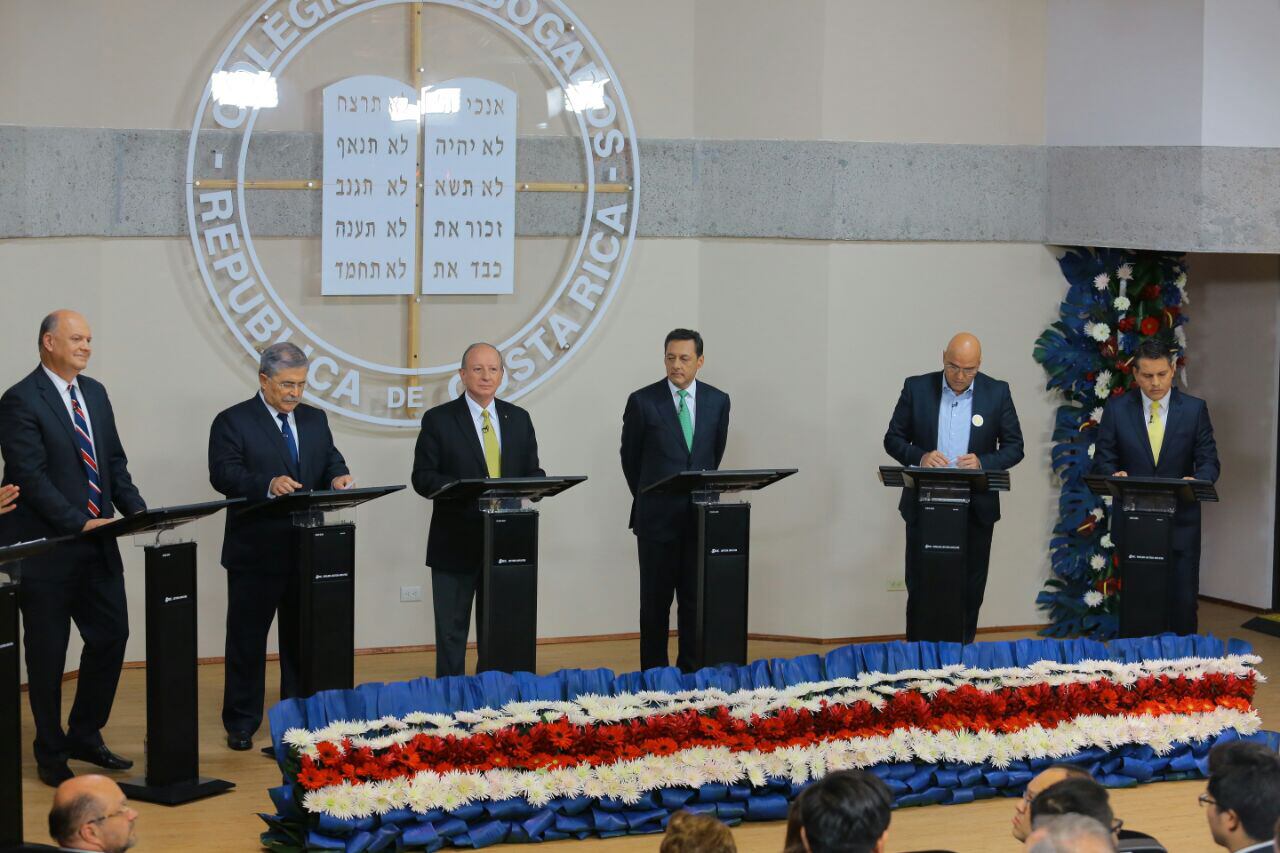 La primera ronda incluyó las siguientes preguntas: si llegara a ser presidente, ¿haría vinculante los dictámenes de la Procuraduría General de la República, elegiría los miembros de las juntas directivas por concurso y qué lección dejó el cementazo en los poderes de la República?