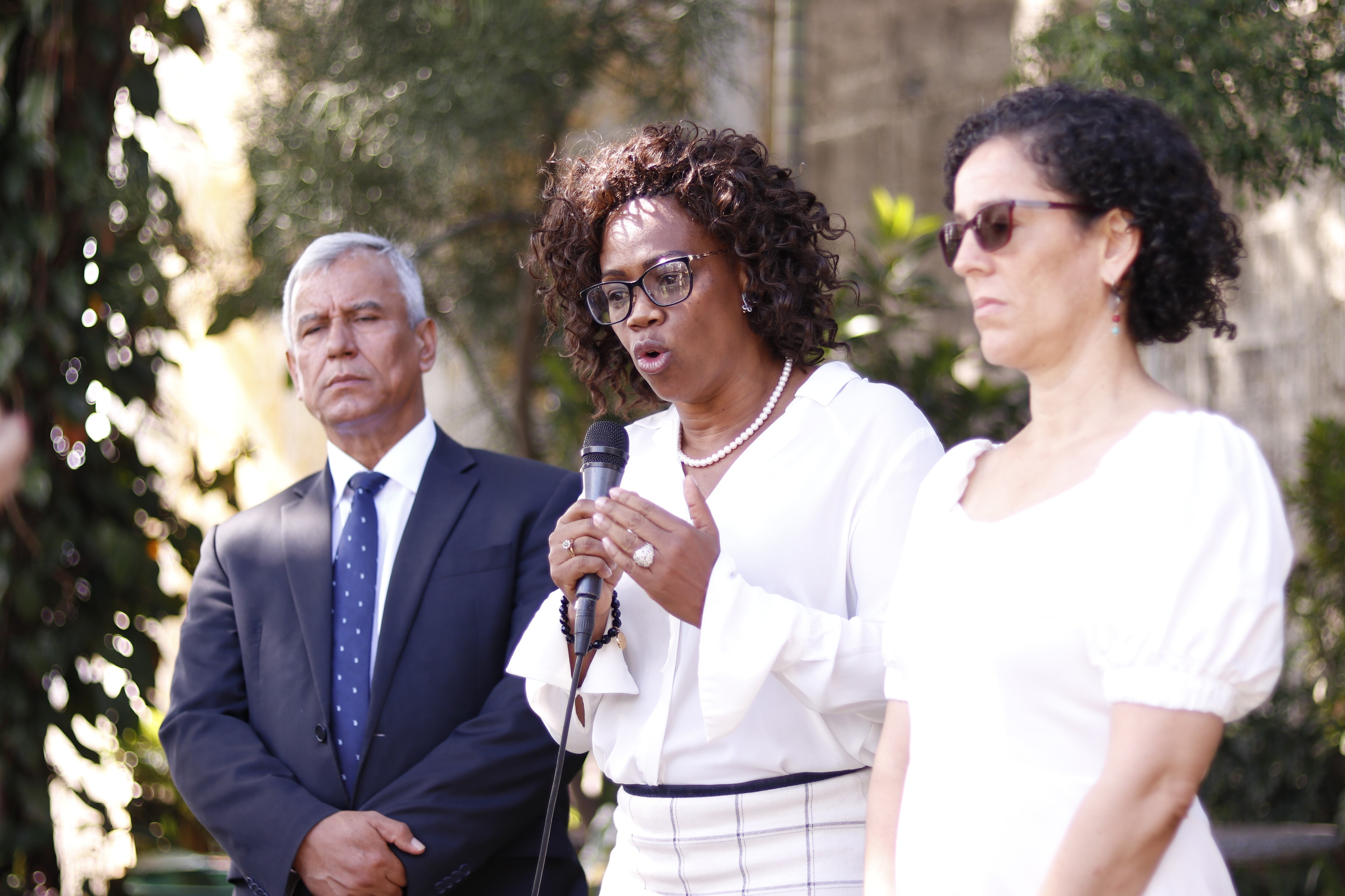 Minutos antes, al cabo del acto de conmemoración por el aniversario 71 de la abolición del ejército, la presidenta en ejercicio afirmó que el gobierno está comprometido con generar espacios de diálogo, en los que las mujeres estarán “en la primera línea”.