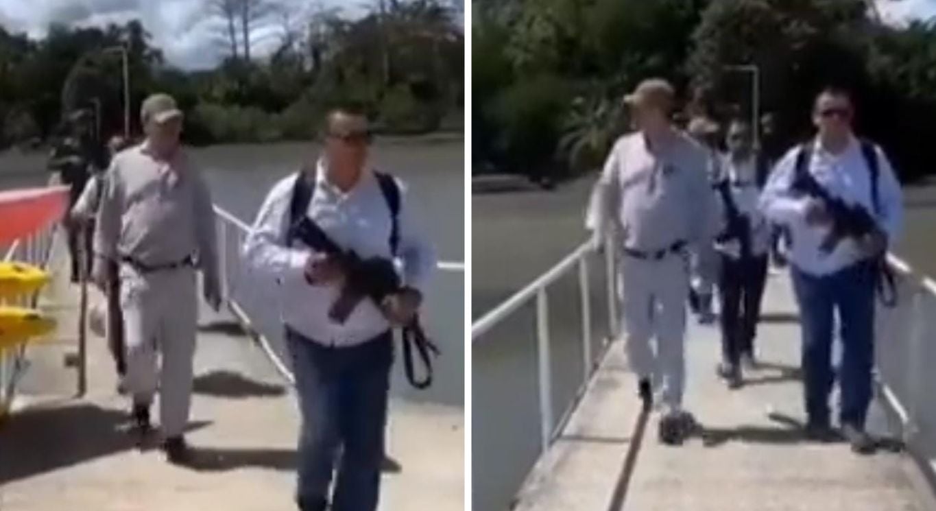 En el siguiente video, grabado el lunes 20 de febrero, el presidente Chaves aparece caminando en un muelle acompañado, en primer plano de la toma, por un escolta con un rifle de asalto. Atrás del mandatario, los escoltaban varias personas más, que también portaban armas de alto calibre.